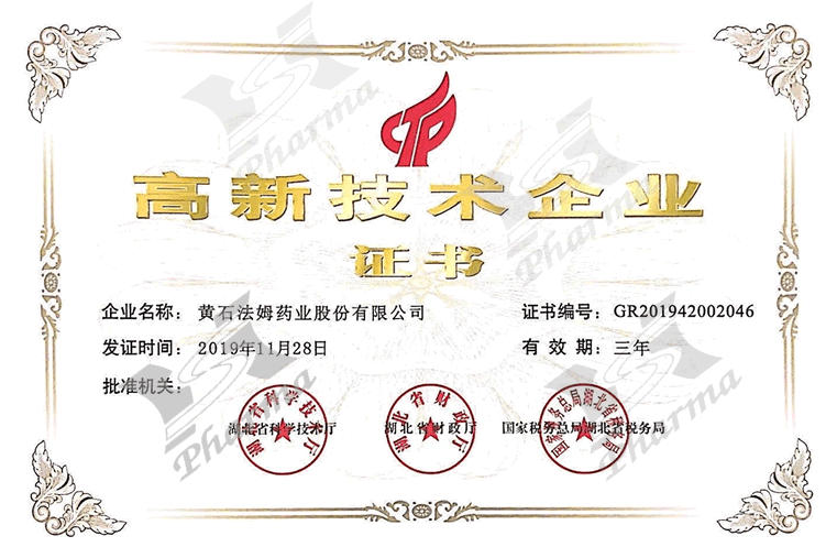 高新技术企业证书